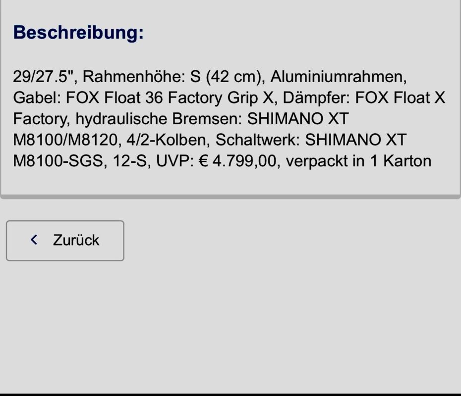 | Laufradgröße/mix | Vorne 29“ hinten 27,5 (Mullet) |